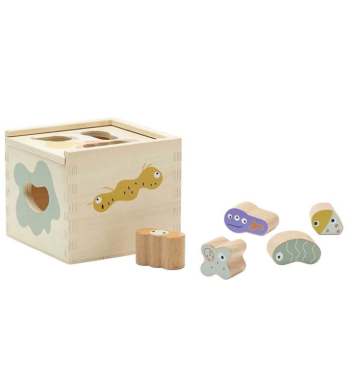 - Kasse eller beholder: Selve kassen, der har udskæringer i forskellige former som trekant, firkant, cirkel osv.